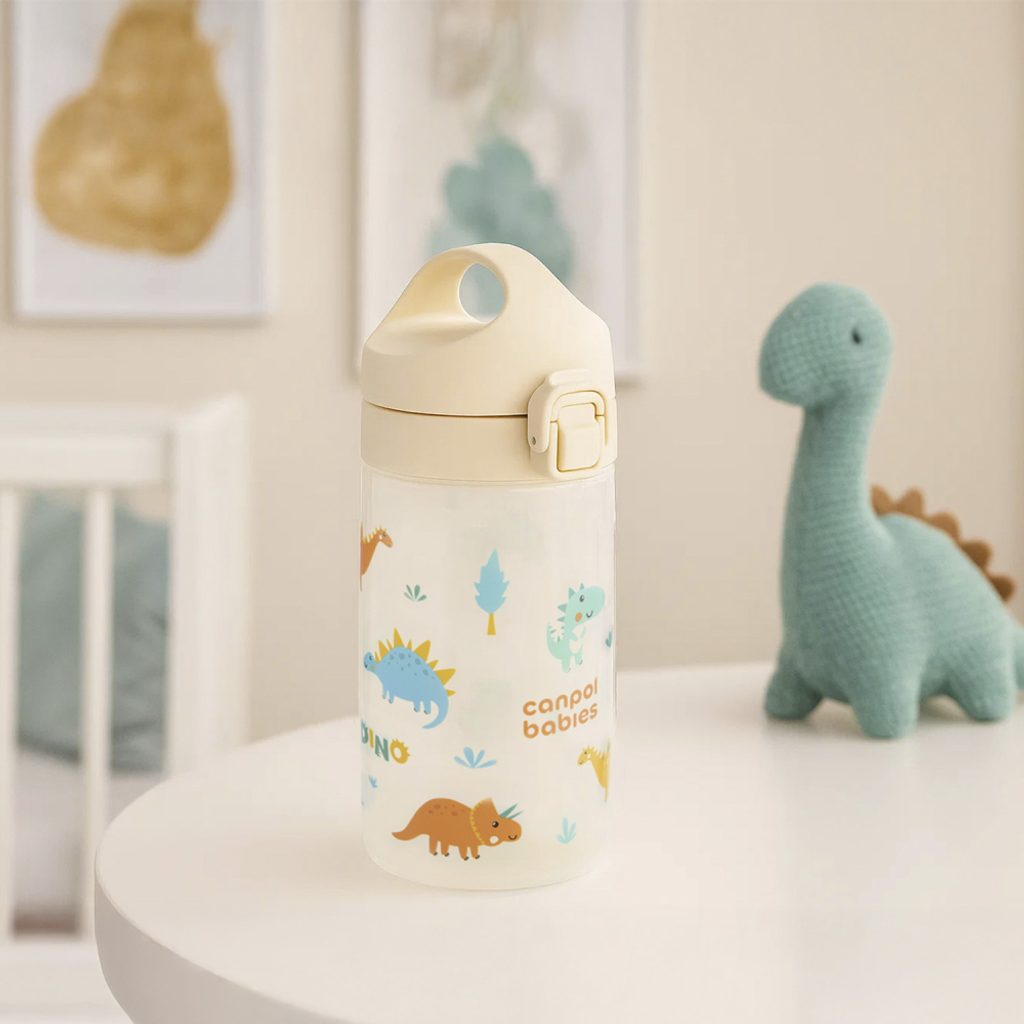 Jednoduché ovládání jednou rukou – jedno kliknutí a pití je připraveno! Náustek je navržen tak, aby se snadno čistil i skladoval – bez brček a závaží. Láhev je vhodná do myčky nádobí (doporučujeme ekologické tablety do myčky Canpol babies – k.č. 1/502, bez barviv a parfemace).