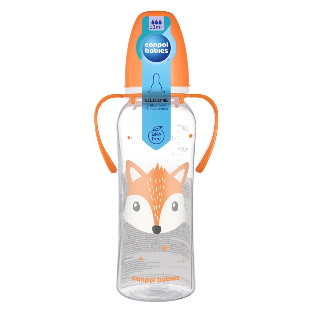 Úzkohrdlá lahev s úchyty 250ml kolekce CUTE ANIMALS je vyrobena z moderního, nerozbitného a bezpečného materiálu. Je lehká, odolná a zcela průhledná. Jasně čitelná a přesná stupnice vám umožňuje kontrolovat množství, které vaše dítě vypije. Savička je vyrobena z měkkého a bezpečného silikonu, je bez chuti a zápachu, což umožní vašemu dítěti snadné přijetí lahvičky. Praktické úchyty umožňují vašemu dítěti držet lahev samostatně. Úchyty jsou odnímatelné. Lahev Canpol babies úzkohrdlá s úchyty 250ml CUTE ANIMALS je kompatibilní se všemi odsávačkami Canpol babies. Můžete tak pohodlně odsát mléko přímo do lahvičky. Je vhodná k mytí v myčce nádobí, dezinfekci ve sterilizátoru a ohřívání v mikrovlnné troubě nebo ohřívači lahví. Lahev Canpol babies úzkohrdlá s úchyty 250ml CUTE ANIMALS byla navržena a vyrobena v Polsku při zachování nejvyšších standardů kvality a bezpečnosti. Při výrobě nebyly použity žádné BPA ani jiné škodlivé látky. Dětská lahvička Canpol babies úzkohrdlá s úchyty 250ml CUTE ANIMALS s roztomilým designem vykouzlí úsměv každému malému dítěti – vyzkoušejte další produkty z kolekce Cute Animals. Vhodné pro děti 12 měsíců.
