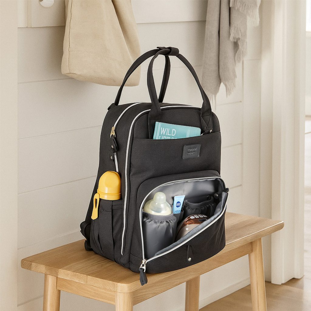 Canpol babies Multifunkční přebalovací batoh černý – stylový, praktický a prostorný společník pro každodenní vycházky s dítětem.