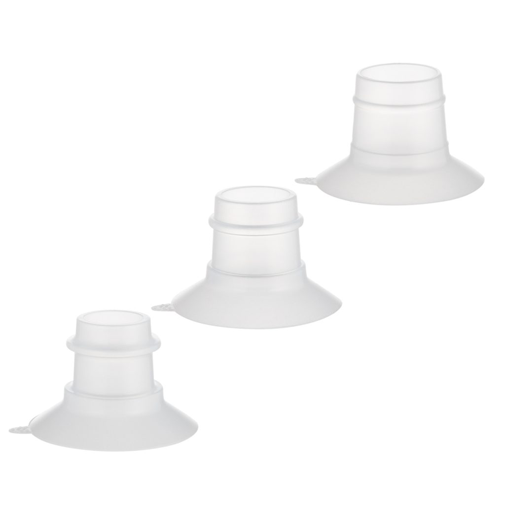 Sada náhradních silikonových vložek 19, 21 a 24 mm do trychtýře odsávačky mateřského mléka MilkShell. Vhodně zvolená velikost trychtýře=účinné odsávání.