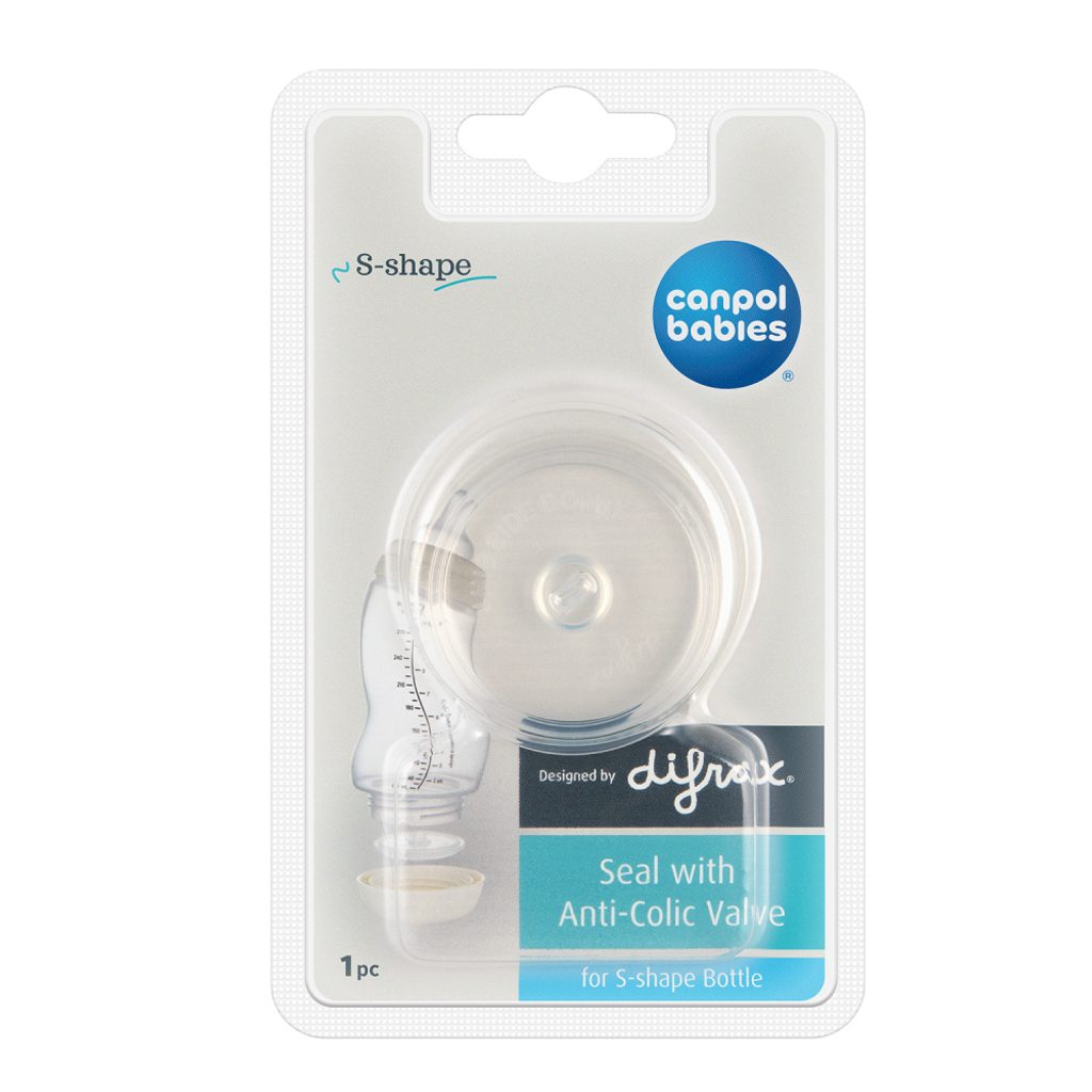 Náhradní vyměnitelné silikonové těsnění s antikolikovým ventilem pro lahev S-shape. Vyrobeno z hypoalergenního silikonu bezpečného pro styk s potravinami.