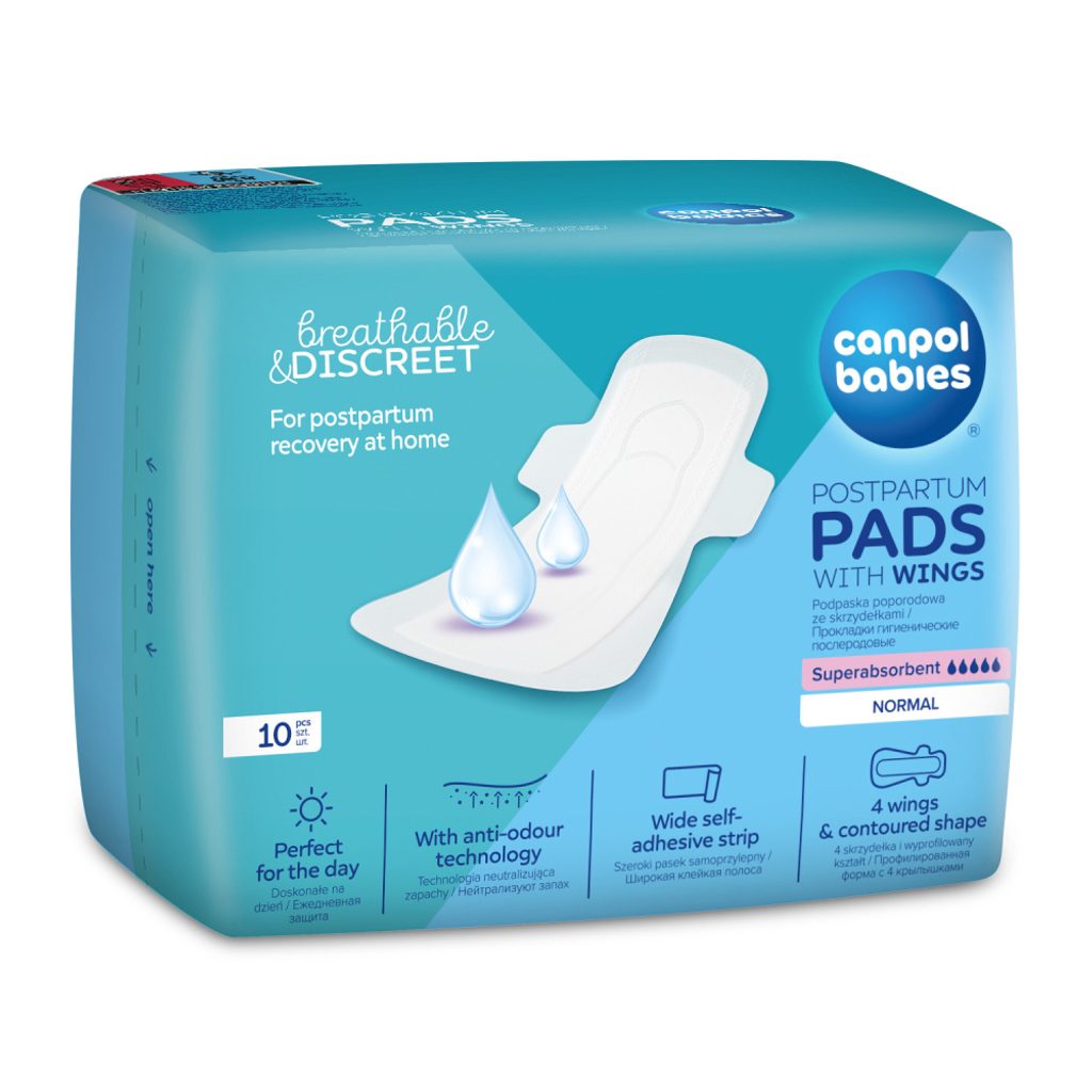 Superabsorpční poporodní vložky Canpol babies s křidélky jsou perfektním řešením pro ženy v poporodním období k použití doma po opuštění porodnice. Poporodní vložky s křidélky jsou tenčí a diskrétnější než běžné poporodní vložky, ale také vysoce savé a prodyšné. Běžné vložky v této situaci nefungují. Prodloužená velikost poporodní vložky s křidélky 42 cm byla upravena tak, aby dobře chránila před protečením i vleže. Poporodní vložky Canpol babies s křidélky mají tloušťku pouze 2,2 mm, ale poskytují až 100% ochranu proti protečení a diskrétnost. Ultra absorpční vložka rychle absorbuje tekutiny a zadržuje vlhkost uvnitř, čímž zajišťuje dlouhotrvající pocit sucha a pohodlí. Profilovaný tvar, 4 křidélka a široký lepicí proužek navíc udrží vložku na místě při pohybu a aktivitách i v noci, když se pohybujete při spánku. Měkká vrchní vrstva těsně přilne k výplni poporodní vložky, nedelaminuje se, zabraňuje přilnutí k pokožce a podráždění. Je šetrná k pokožce a zcela prodyšná, zatímco technologie proti zápachu dodává matce pocit svěžesti.