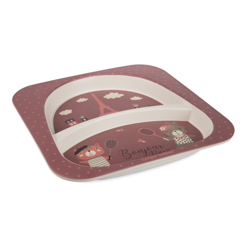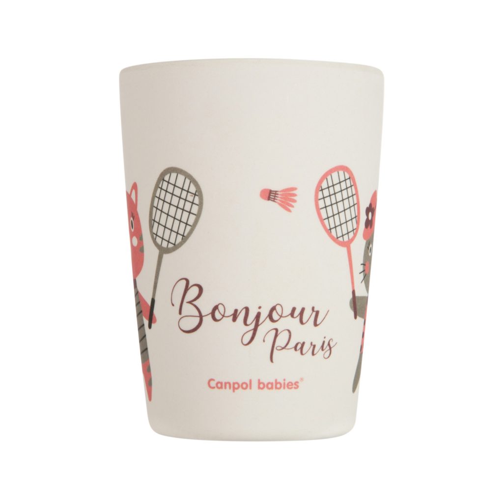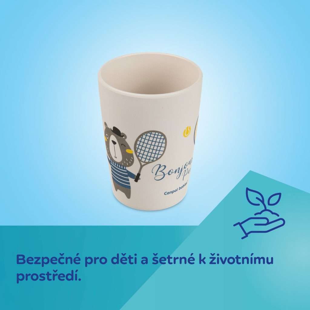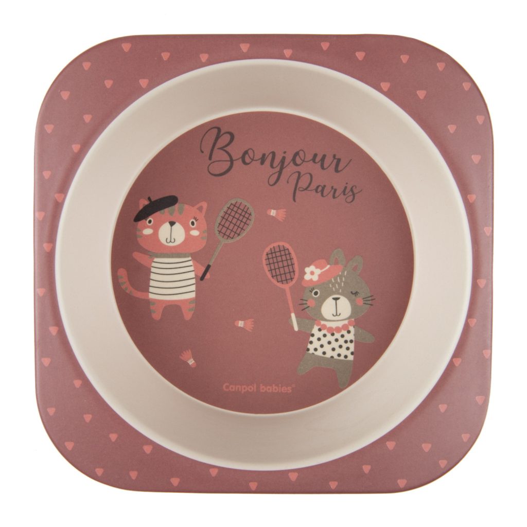 Sada nádobí BONJOUR PARIS je ekologickou alternativou klasických talířů a misek z plastu. Sada nádobí je vyrobena z pevného, odolného, nerozbitného materiálu vhodného pro styk s potravinami, za použití přírodních surovin – 50 % dřevitých vláken a 30 % kukuřičného škrobu (a 20 % melaminové pryskyřice).Sada obsahuje: talíř, misku, hrnek a příbor – vidličku a lžíci. Příbor má zaoblené hrany, díky čemuž je bezpečný pro dětská ústa a jemné dásně. Sada dětského nádobí BONJOUR PARIS s roztomilými potisky povzbudí vaše dítě k jídlu. Sada dětského nádobí Canpol babies z kolekce BONJOUR PARIS je ideální pro děti od 12 měsíců, které se učí samy jíst a pít. Lze mýt v myčce za použití nebarvených tablet do myčky a jemných mycích prostředků. Sada nádobí pro miminka BONJOUR PARIS se bude skvěle hodit doma, na dovolené nebo na pikniku.