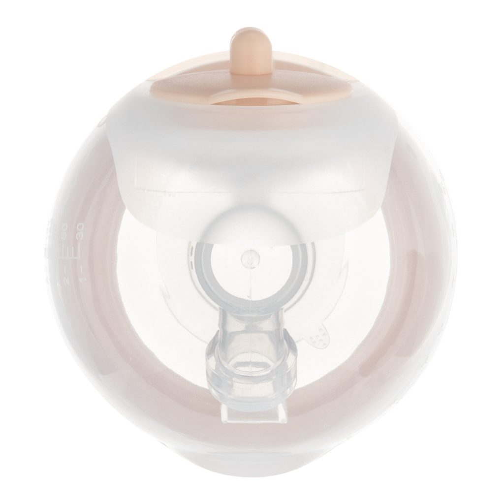 Měkký a pružný okraj trychtýře těsně přiléhá k prsu, s úhlem 140 stupňů zajišťuje dokonalé utěsnění bez sklouznutí během použití. Díky správně tvarovanému trychtýři je odsávání mateřského mléka efektivnější a zabraňuje úniku mléka po stranách. Sběrný tychtýř je navržen tak, aby eliminoval únik mateřského mléka – otvor pro přelévání odsátého mléka je umístěn nahoře, na straně prsu, což minimalizuje riziko úniku mléka během pohybu nebo naklonění. Sada obsahuje také silikonovou membránu a zpětný ventil, které vytvářejí efektivní uzavřený systém, zajišťující správný tok mléka a brání jeho zpětnému toku do těla odsávačkyí. Sběrný trychtýř má kapacitu 180 ml.