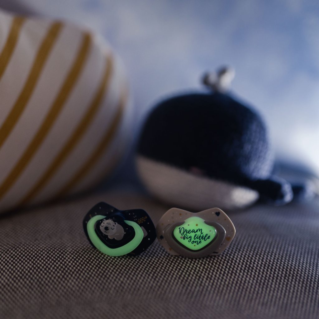 Svíticí prvky ve tmě – usnadňují hledání dudlíku v noci.