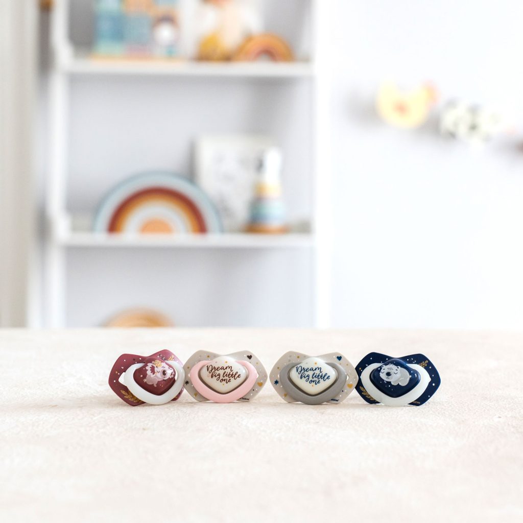 Dudlíky jsou k dispozici v atraktivních barvách a nápaditých designech.