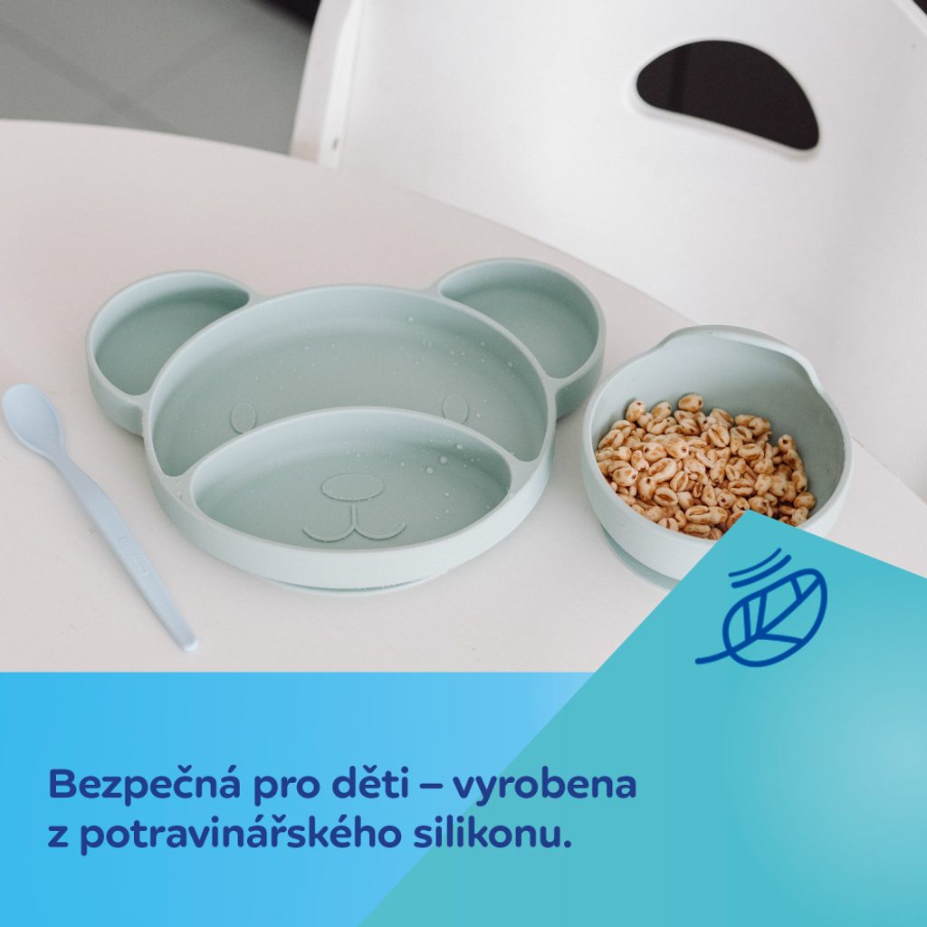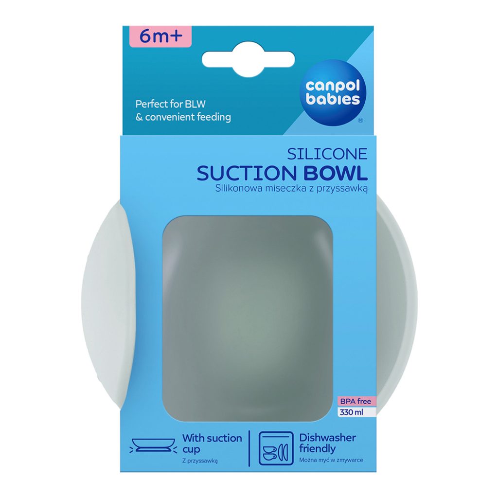 Silikonová miska s přísavkou je perfektní pro první příkrmy vašeho miminka na začátku jeho dobrodružství s rozšiřováním jídelníčku včetně metody BLW. Dětská miska Canpol babies má protiskluzovou přísavku, která zabraňuje nekontrolovanému pohybu misky po povrchu stolu nebo desky krmící židličky a zabraňuje převrácení nebo úplnému shození nádobí na podlahu. Zaoblené tvary a zvýšený, profilovaný okraj misky usnadňují dítěti nabírání jídla. Je vyrobena ze 100% vysoce kvalitního potravinářského silikonu. Silikonové nádobí je flexibilní a trvanlivé, odolné proti nárazům a pádům, nepohlcuje pachy. Perfektní pro podávání polévky, těstovin, jogurtu s ovocem nebo mléka s cereáliemi. Miska Canpol babies se snadno čistí a je odolná vůči vysokým teplotám - lze ji ohřívat v mikrovlnné troubě a mýt v myčce.