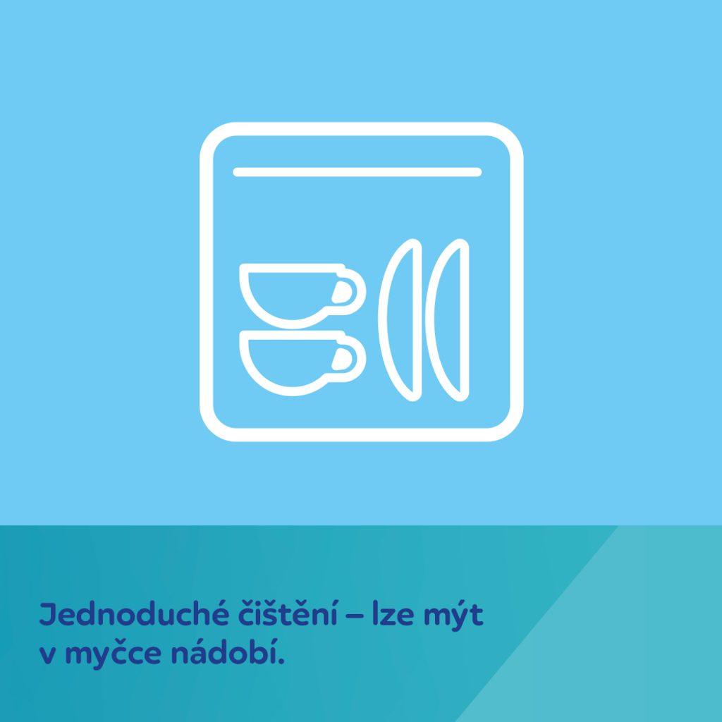 Udržujte bryndáček čistý. Omyjte v teplé vodě s jemným mycím prostředkem, důkladně opláchněte. Přelijte vroucí vodou. Možno mýt v myčce.
