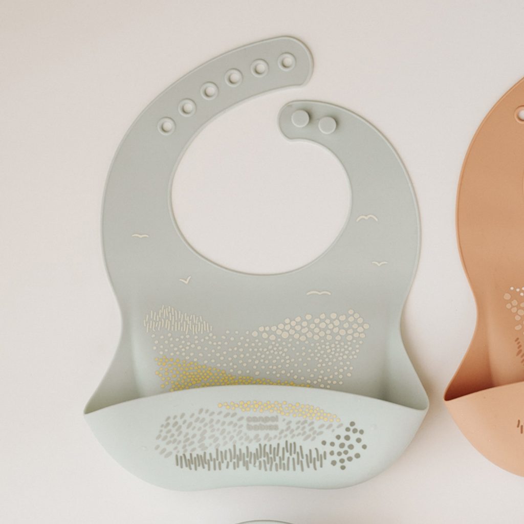 Vodotěsný silikonový bryndáček s kapsou z kolekce MOUNTAINS je nezbytný při rozšiřování jídelníčku vašeho miminka a při prvním samostatném krmení. Dokonale ochrání oblečení vašeho dítěte před ušpiněním a mokrem při jídle. Je lehký, měkký, pružný a příjemný na dotek.