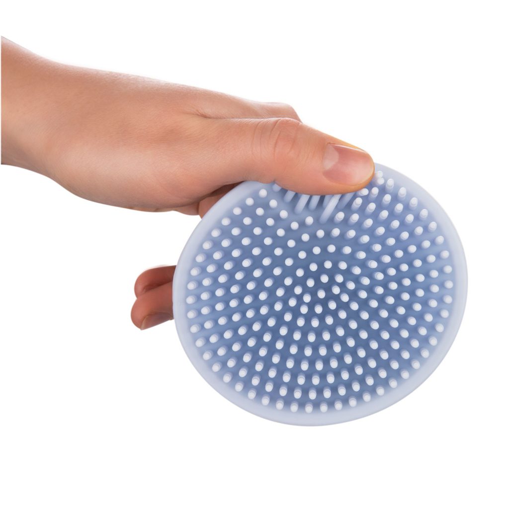 Silikonový koupelový kartáč je určen k dětské koupeli. Jemně masíruje pokožku a snadno se udržuje v čistotě.