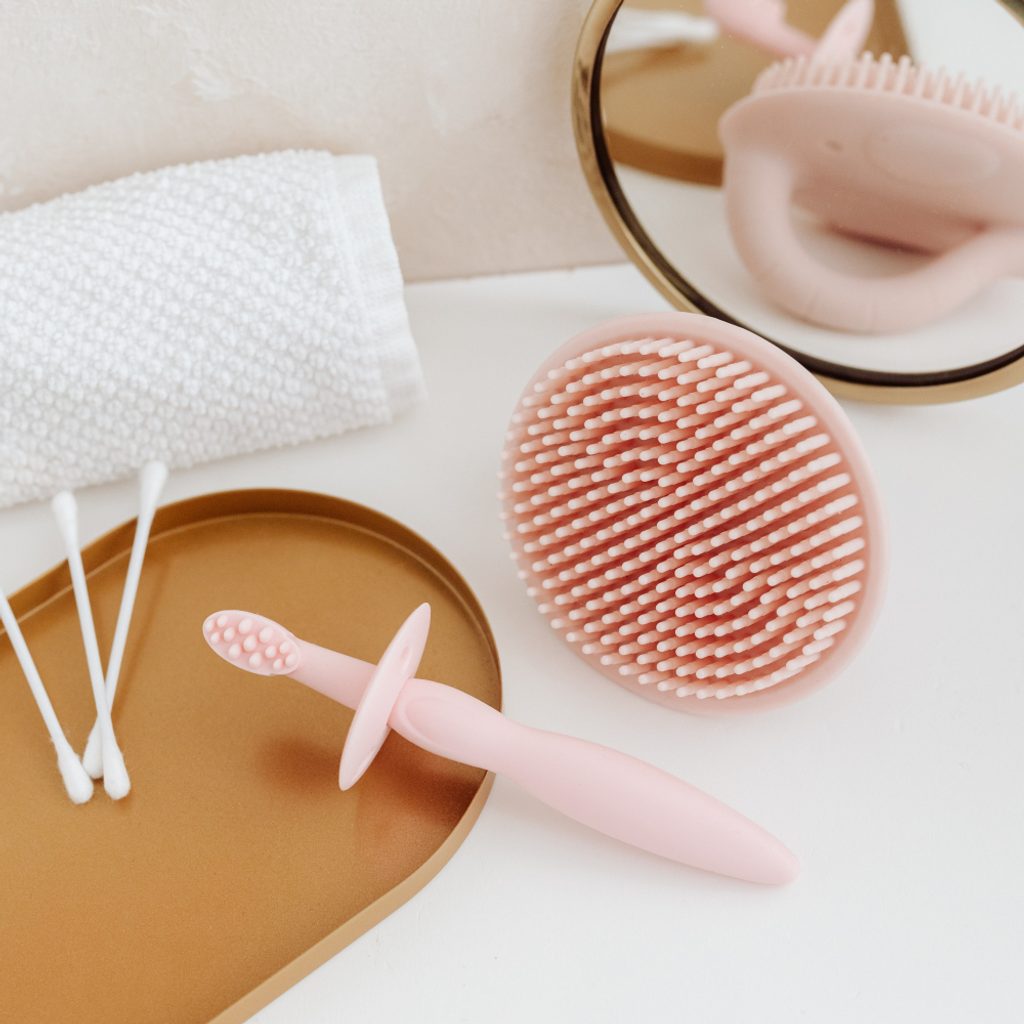 Silikonový koupelový kartáč je určen k dětské koupeli. Jemně masíruje pokožku a snadno se udržuje v čistotě.