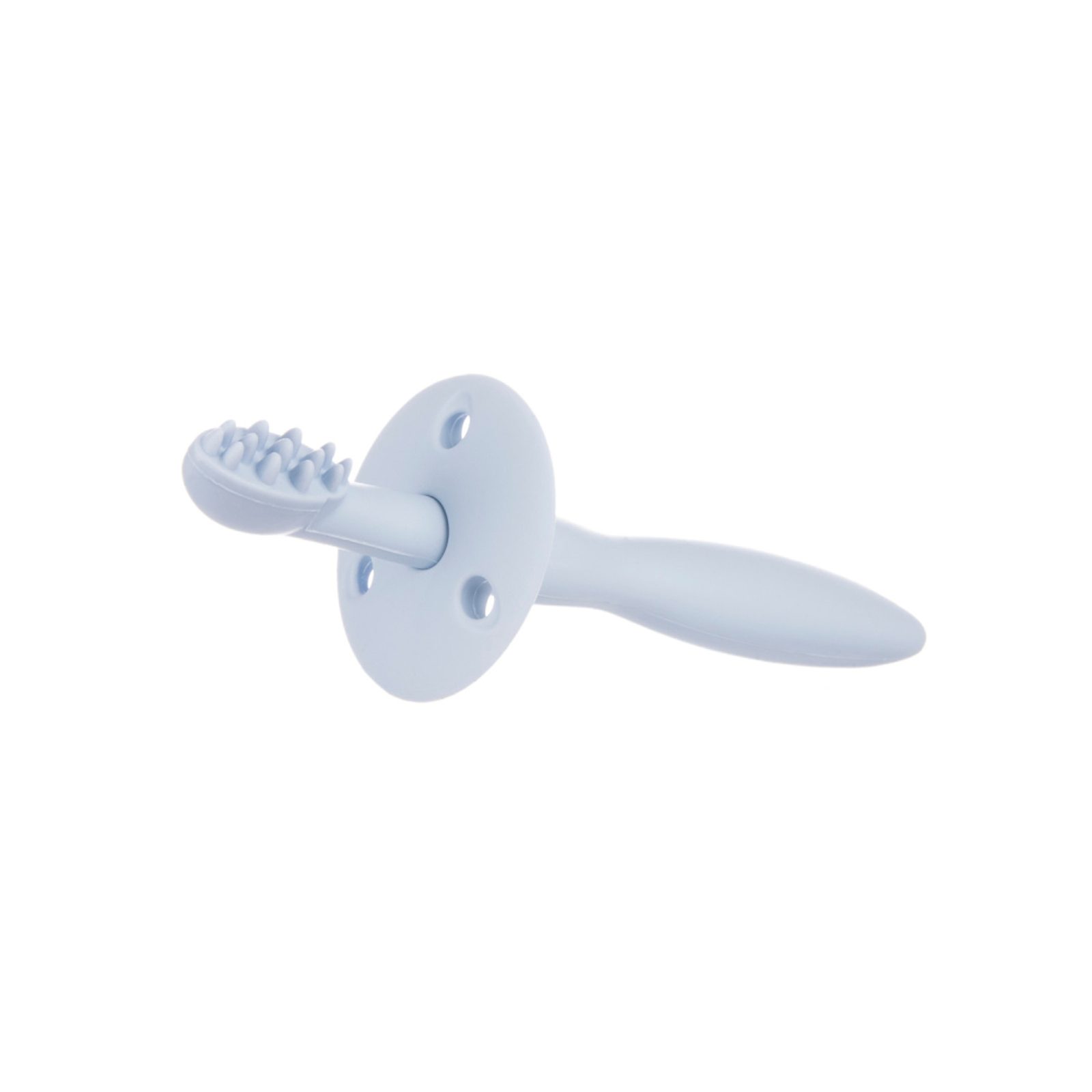 Silikonový zubní kartáček se štítkem a kousátko v jednom pro nejmenší. Slouží k jemnému čištění prvních dětských zoubků a také k masáži citlivých dásní. Vhodný od 0 měsíců. Neobsahuje BPA.