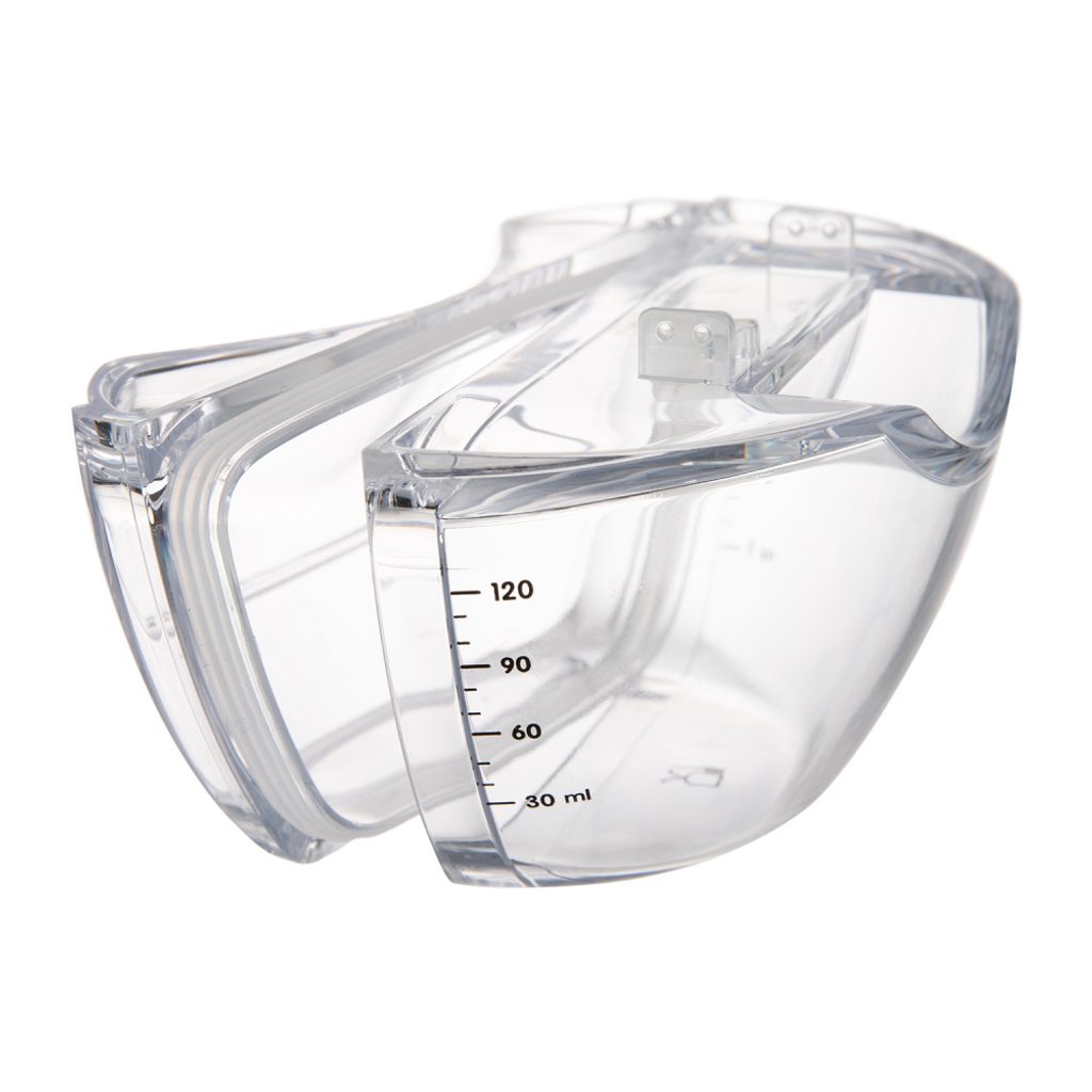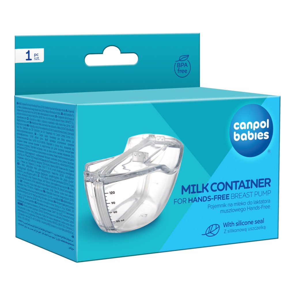 Zásobník na mléko je rozebíratelný, snadno se čistí, dezinfikuje a suší. Speciální těsnění zabraňuje úniku mléka při uzavření. Speciální profil v horní části nádoby a dva vyčnívající prvky usnadňují nalití odsátého mléka do lahve bez rozlití mléka. Pokud uzavřete zásobník na mateřské mléko bílým uzávěrem*, můžete skladovat v lednici. Zásobník o objemu 120ml je vyroben z plastu, který neobsahuje BPA ani jiné škodlivé látky – je zdravotně nezávadný a vhodný pro přímý styk s potravinami včetně mateřského mléka. Díly, které jsou v kontaktu s mateřským mlékem, lze opakovaně vyvařovat a sterilizovat.