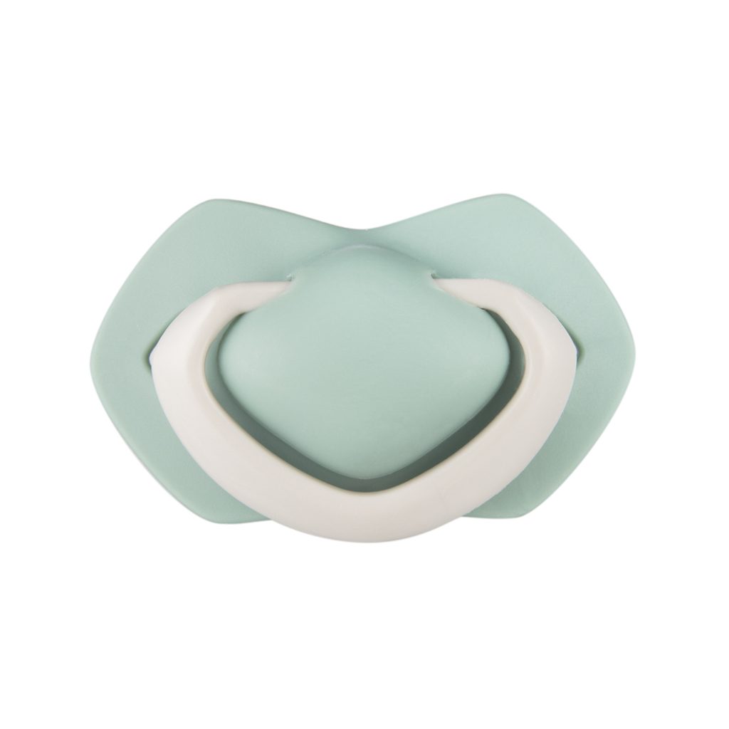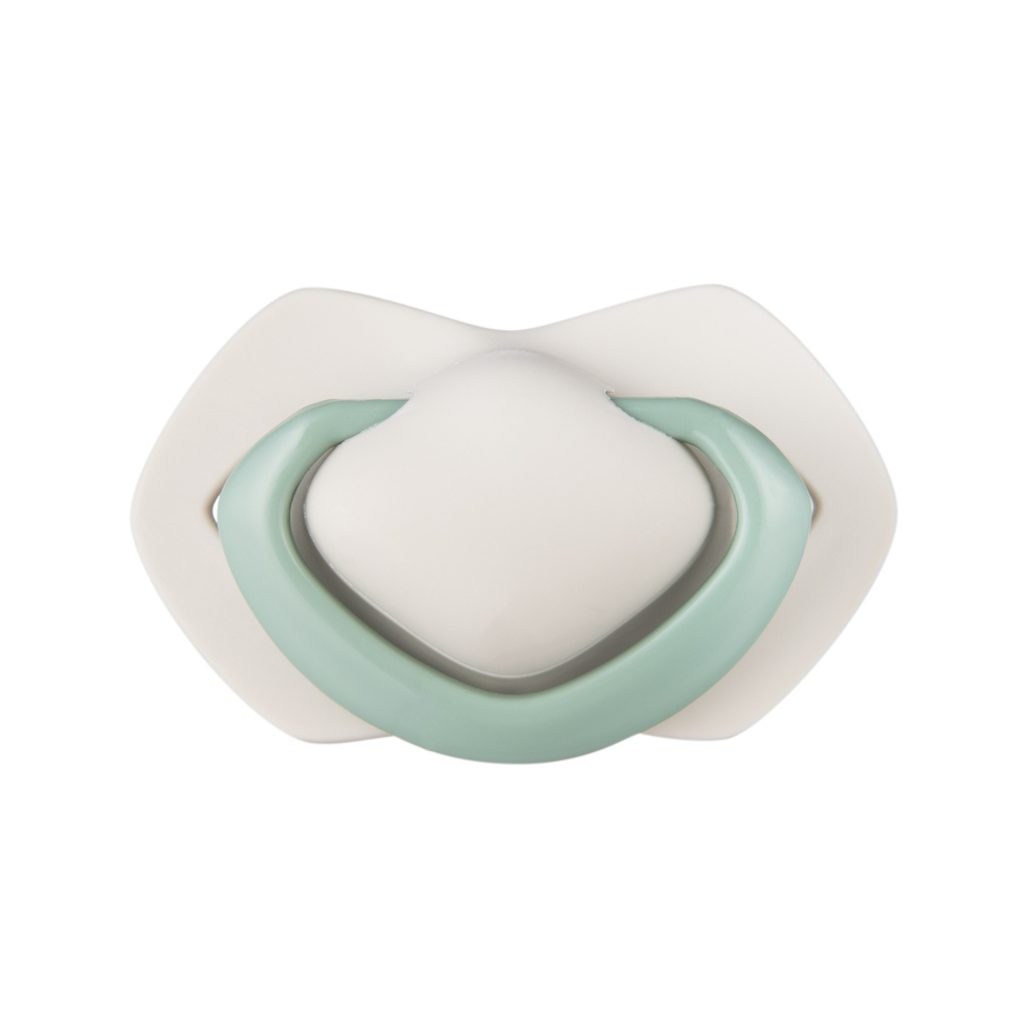 Speciálně profilovaný tvar plochého štítku — redukuje kontakt s obličejem dítěte a minimalizuje riziko podráždění.
