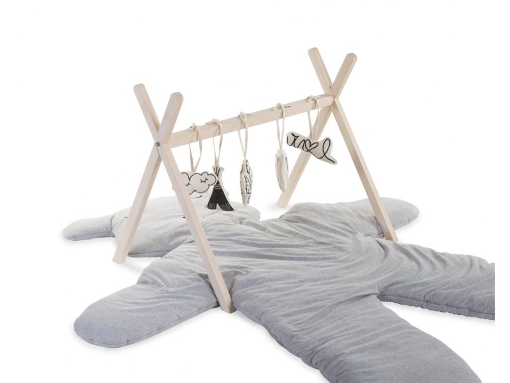 Měkká hrací deka v podobě obrovského medvěda zpříjemní hraní dítěte na zemi a zároveň slouží jako krásná dekorace dětského pokoje. Deka je potažena příjemnou žerzejovou textilií ze 100% bavlny. Výplň: 100% polyester. Rozměry: 150 x 123 x 5 cm