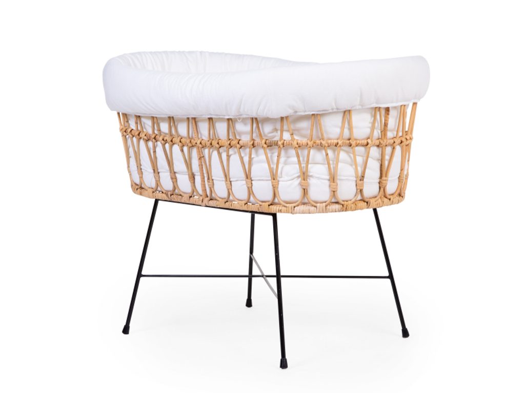 Košík na miminko v krásném přírodním designu je vyroben z ratanu. Jeho součástí je měkká matrace a textilní potah z měkké bavlny, který dotváří útulné a pohodlné prostředí pro miminko. Kovové nohy zaručují stabilitu košíku. Díky nízké hmotnosti se košík snadno přenáší, abyste mohli mít miminko vždy na dohled. Rozměry: 90 x 50 x 71 cm Materiál: ratan, matrace: 80% bavlna, 20% polyester, výplň: 100% polyester, potah: 100% bavlna. Potah je možno prát v pračce. Košík je vhodný pro miminko od narození do cca 6 měsíců (max. do 9 kg).