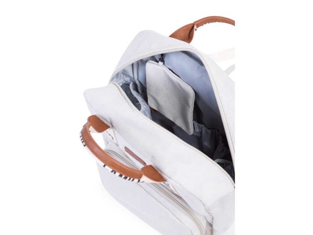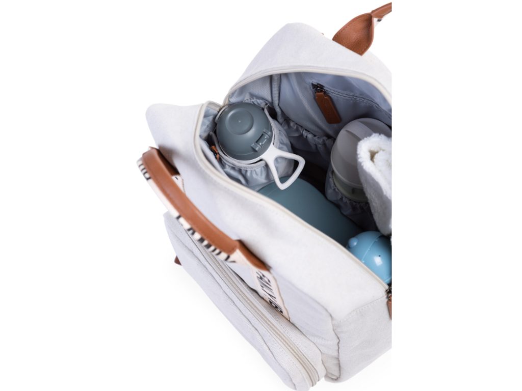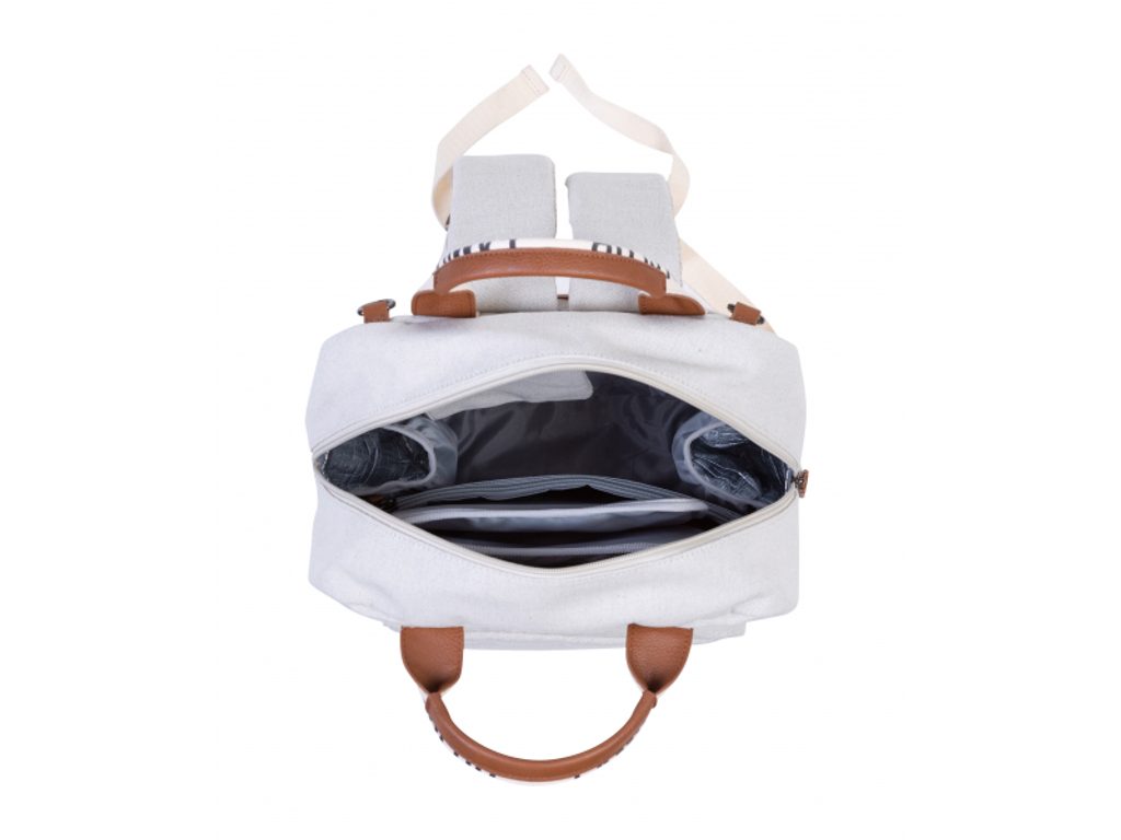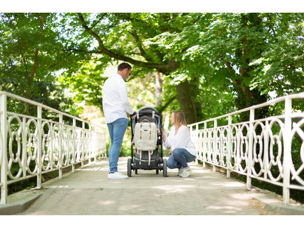 Stylový unisex batoh bude díky svému nadčasovému designu vyhovovat mamince, tatínkovi i prarodičům! Do batohu snadno a přehledně sbalíte vše potřebné na procházky a výlety s miminkem a vaše ruce zůstanou volné. Součástí batohu je přebalovací podložka a termoizolační kapsy na láhev. Přehlednou organizaci obsahu batohu zaručuje množství vnitřních i vnějších kapes a úchytů. Díky speciální kapse pro vlhčené ubrousky jsou ubrousky vždy okamžitě po ruce připravené k použití. Úchyty na kočárek umožňují zavěšení batohu na rukojeť kočárku, úchyt na vytahovací rukojeť kufru vám usnadní cestování během dovolené. Díky kvalitnímu voděodolnému materiálu stačí batoh při znečištění otřít vlhkým hadříkem. Složení: 65% bavlna, 35% polyester, podšívka 100% nylon. Nosnost: 5 kg Objem 20,5 l Rozměry: 40 x 30 x 16 cm