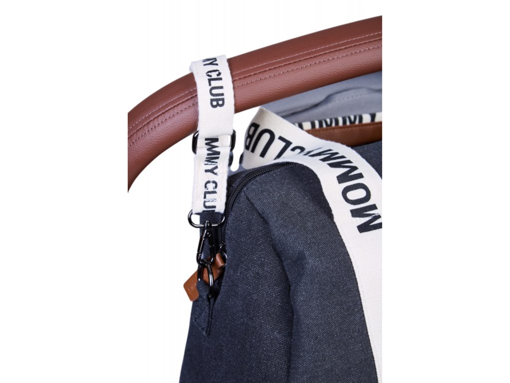Stylová přebalovací taška Childhome Mommy Club je ideální pro organizované a přehledné uložení všeho, co potřebujete na procházky a výlety s miminkem. Vnitřní prostor je vybaven termoizolační kapsou na láhev a elastickými kapsami pro vlhčené ubrousky, pleny, náhradní oblečení a další nezbytnosti. Součástí tašky je také praktická přebalovací podložka. Taška se uzavírá na zip a je vybavena držadly pro pohodlné nošení v ruce, popruhem pro nošení přes rameno a úchyty pro zavěšení na kočárek. Vyrobena je z pevného plátna s podšívkou, a díky kvalitnímu voděodolnému materiálu ji stačí při znečištění otřít vlhkým hadříkem.