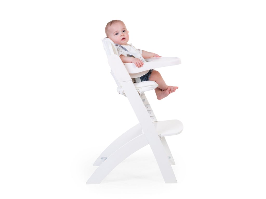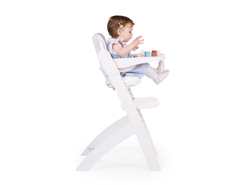 Rostoucí židlička z bukového dřeva Childhome Evosit umožňuje snadné nastavení výšky sedáku a opěrky nohou bez šroubování. Díky svému nadčasovému designu se židlička stane i krásným doplňkem vašeho interiéru. Odnímatelný jídelní pult z ABS plastu se snadno udržuje otřením a je možné jej mýt myčce. Bezpečné usazení dítěte zajišťuje 5-bodový bezpečnostní pás a madlo kolem pasu. Pro starší děti je možné madlo i pásy odmontovat a židličku používat jako standardní židli ke stolu. Díky nosnosti do 85 kg je možné židličku používat až do dospělosti dítěte. Pro větší pohodlí dítěte je možné k židličce dokoupit sedací polštářky. Rozměry jídelního pultu: Š 36 cm - H 17 cm Výška pultu od země: 72,5 cm Rozměry sedáku: Š 43 cm - H 23 cm Možné výšky sedáku: 56 cm - 52,5 cm - 49 cm Rozměry opěrky nohou: Š 43cm - H 26cm Možné výšky opěrky nohou: 41, 37, 33.5, 29.5 a 26 cm Půdorys židličky: 45 x 60 cm Rozměry: 45 x 53 x 86 cm Nosnost: 85 kg Vhodné pro děti od 6 měsíců.