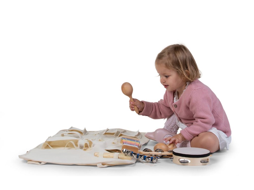 Sada dětských hudebních nástrojů v praktickém textilním organizéru umožní nejmenším hudebníkům seznámit se s hudební improvizací a zajistí jim nekonečnou zábavu. Sada obsahuje 8 hudebních nástrojů: tamburínu, perkuse, rumbakouli, chrasticí vejce, xylofon, ruční chrastítko, triangl a rolničky do ruky. Hudební nástroje pro batolata rozvíjí sluchové a motorické dovednosti dítěte. Rozměry organizéru: 80,5 x 60 x 5 cm Vhodné pro děti od 36 měsíců.