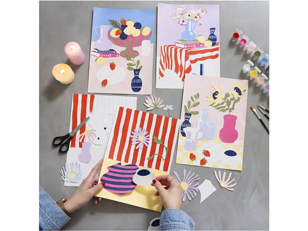 Celý projekt je navržený tak, aby byl přístupný a relaxační zároveň – žádné předchozí zkušenosti nejsou potřeba. Nanesete barvy na pozadí, vybarvíte motivy, vystřihnete je a s pomocí víceúčelového lepidla složíte finální koláž. Každý obraz je originál, protože o jeho výsledném vzhledu rozhodujete výhradně vy.