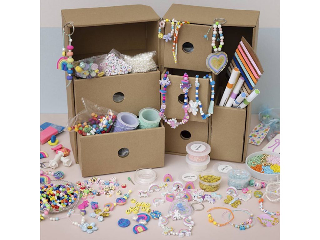 Otevři zásuvku a začni tvořit. Maxi šperkařský box je víc než jen sada – je to kompletní kreativní stanice, kde děti navlékají, modelují, personalizují a balí vlastní šperky přesně podle svého stylu. Náramky se jmény, třpytivé přívěsky, barevné klíčenky nebo dárky pro kamarádky? Tady je vše po ruce.
