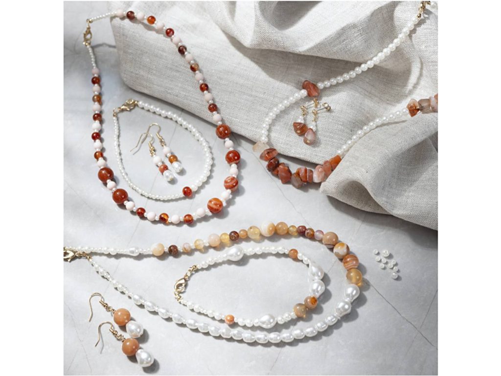 Kombinace achátu, jantaru a perleťově bílých korálků vytváří harmonii, která působí zároveň elegantně i přirozeně. Výsledné šperky nejsou okázalé – jsou rafinované. A právě proto se hodí na každou příležitost, od každodenního nošení až po slavnostnější momenty, kdy chcete vyniknout s lehkostí a stylem.