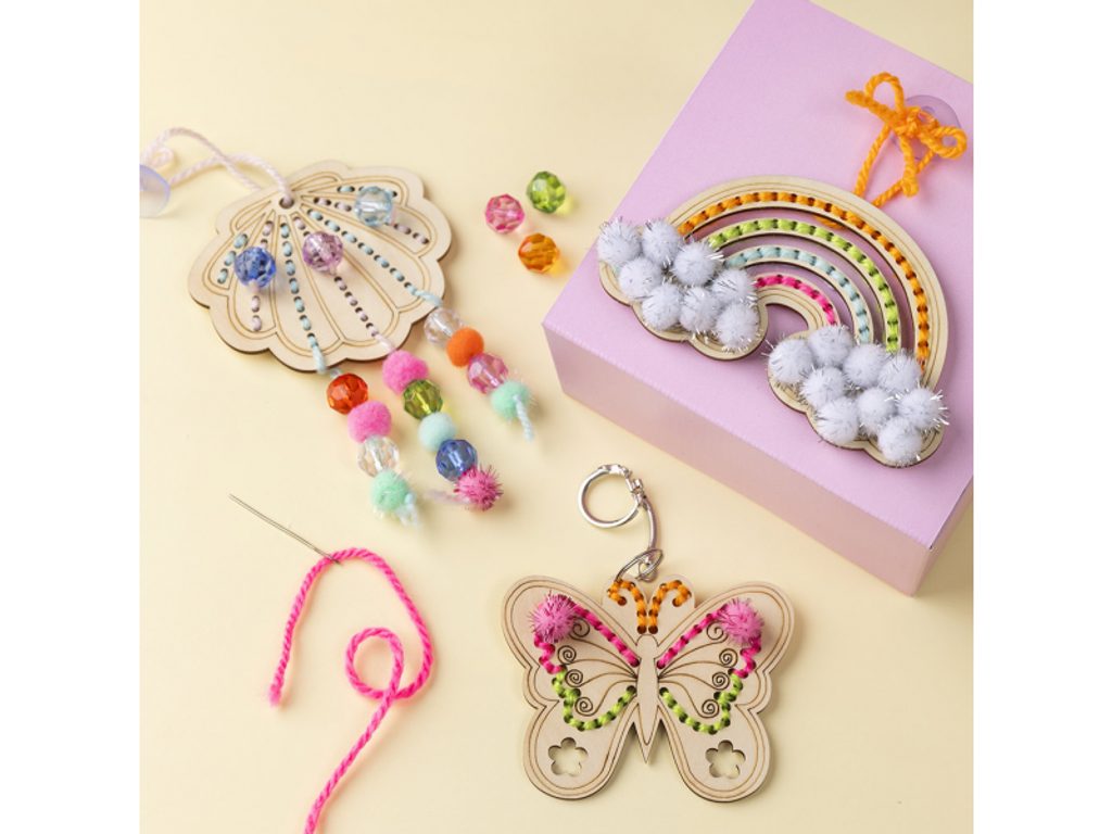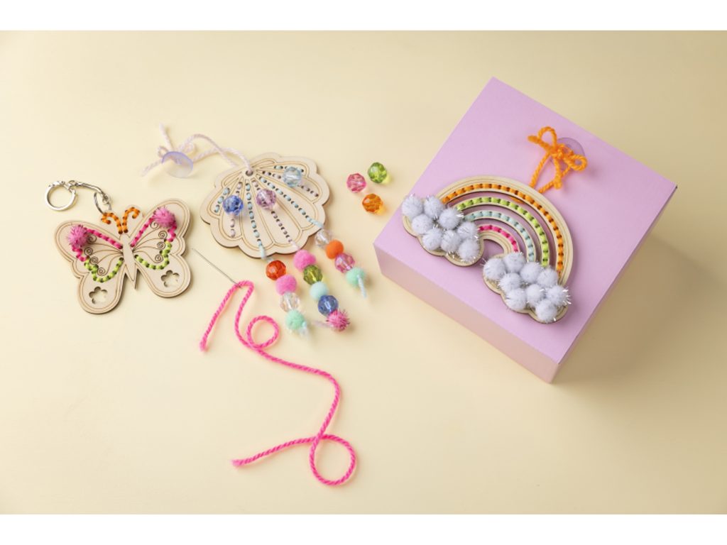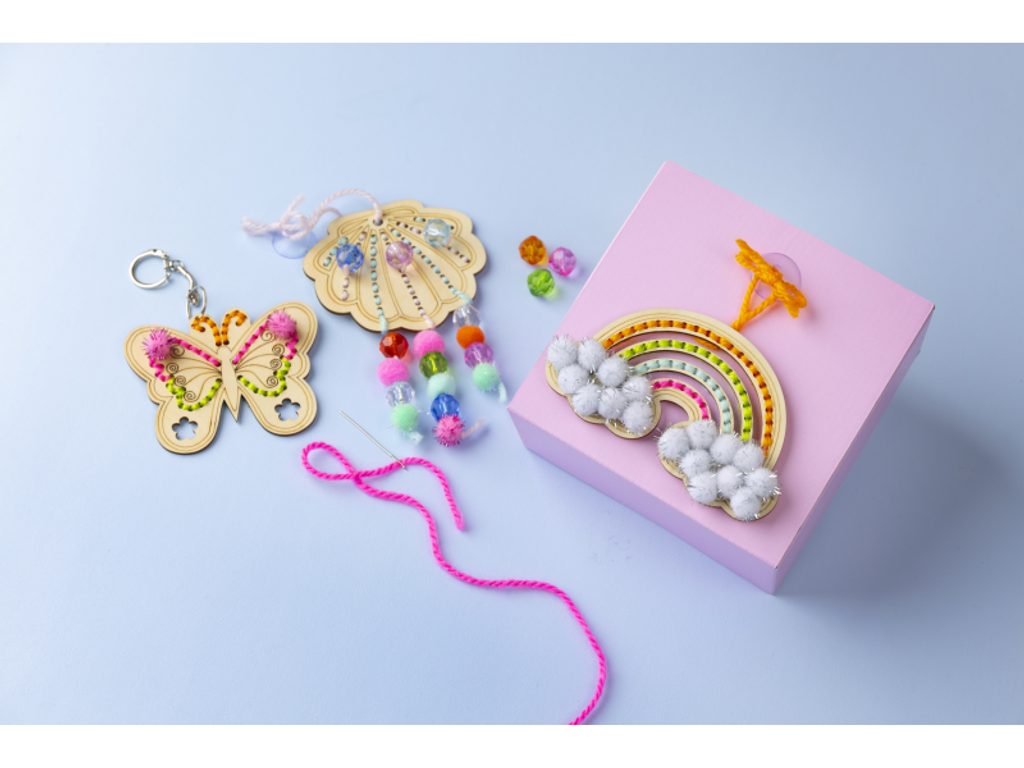 - Kreativní svoboda v barvách – výběr příze, korálků a bambulí je na dítěti; každá sada vypadá jinak