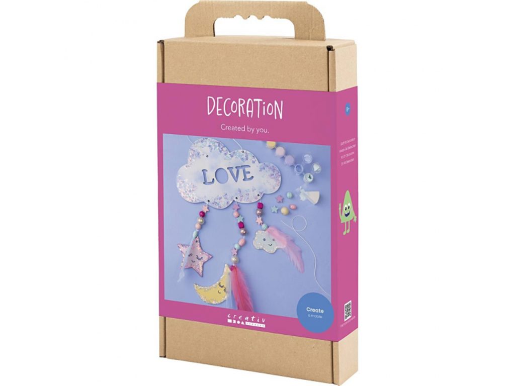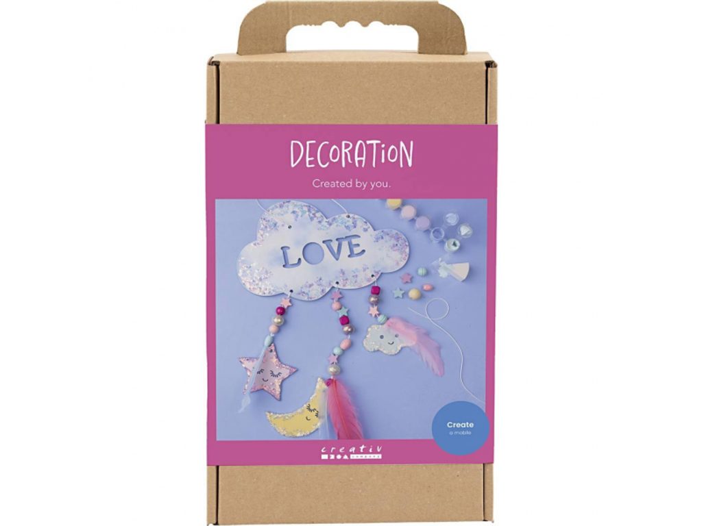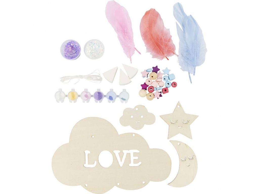 Hvězdy, které si vyrobíš sám. Kreativní sada Noční obloha od Creativ Company přemění dětský pokoj v kouzelný vesmír – společně s rodiči vytvoříte originální závěsnou dekoraci, kterou zavěsíte do okna, ze stropu nebo nad postel. Dřevěný základ se nabarví, dozdobí třpytivou hmotou pro hvězdný lesk a doplní korálky s peříčky pro lehký, snový efekt. Výsledek je nejen krásný, ale hlavně osobní – každá dekorace vypráví příběh fantazie dítěte.