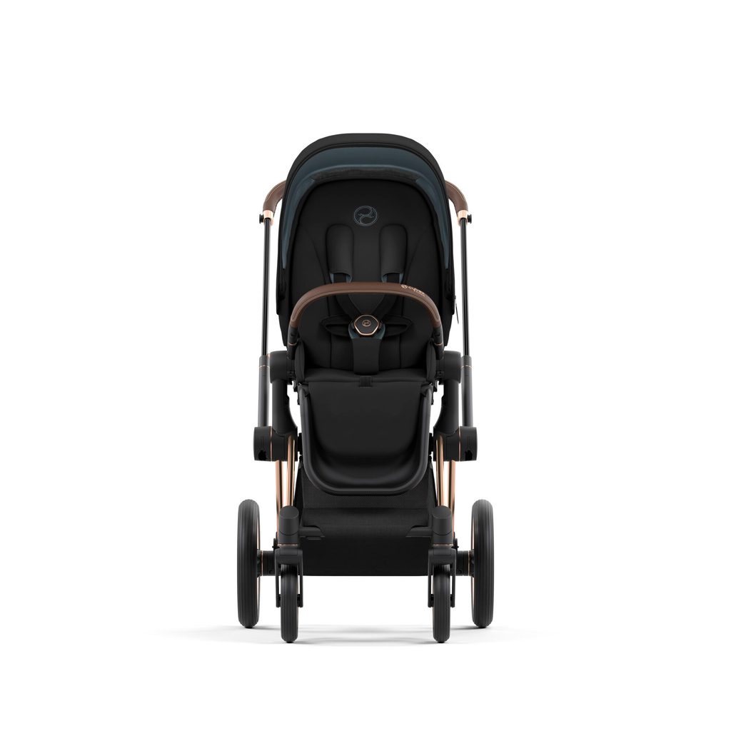 Podvozek Priam přijme hlubokou korbu pro novorozence, autosedačku Cybex (adaptéry v balení) i sportovní nástavbu pro starší dítě. Sezení lze otočit po směru i proti směru jízdy – podle toho, co dítě právě potřebuje.