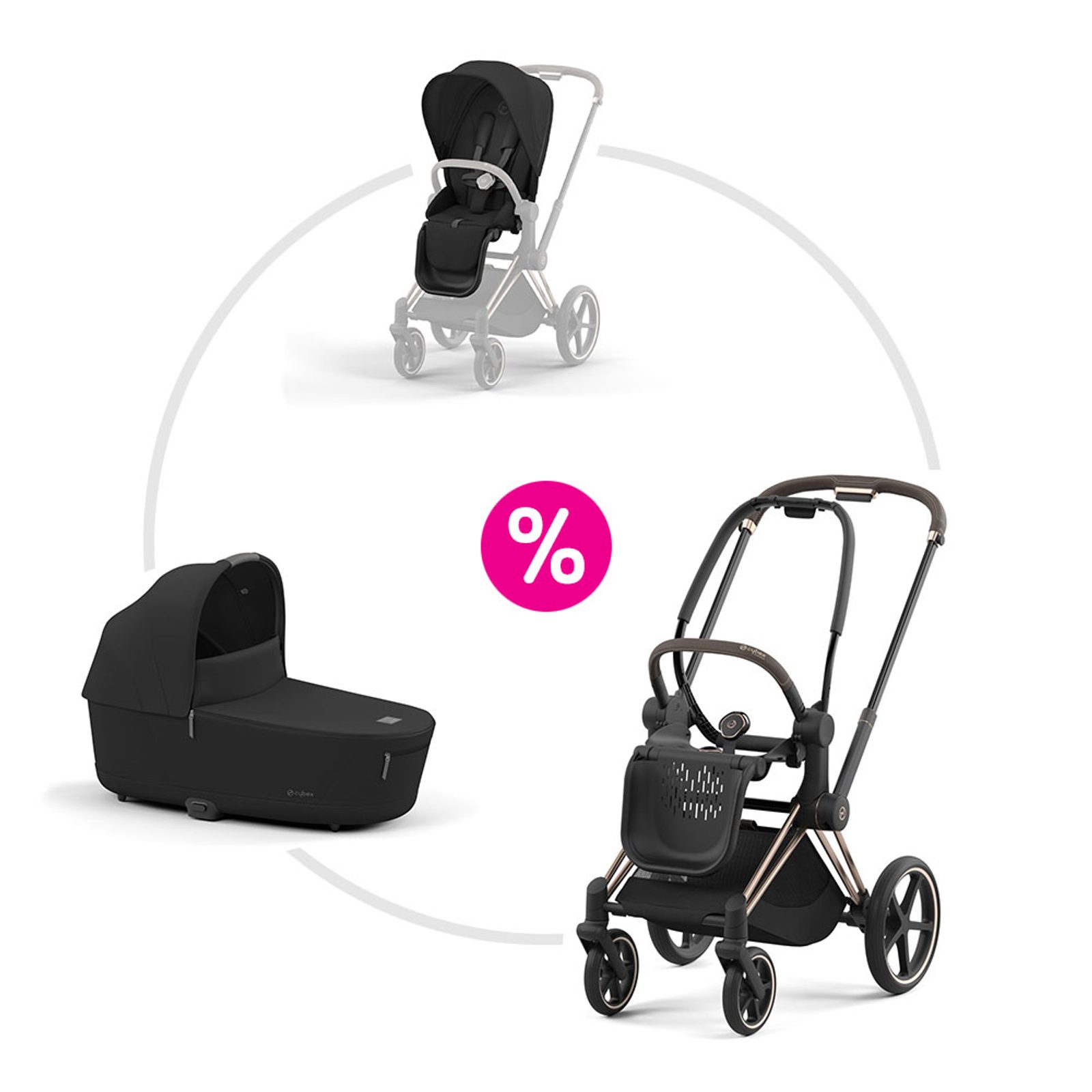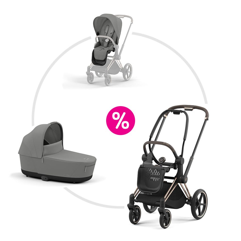 Cenově výhodný set Cybex Priam Rosegold – kompletní cestovní systém 4v1 od narození