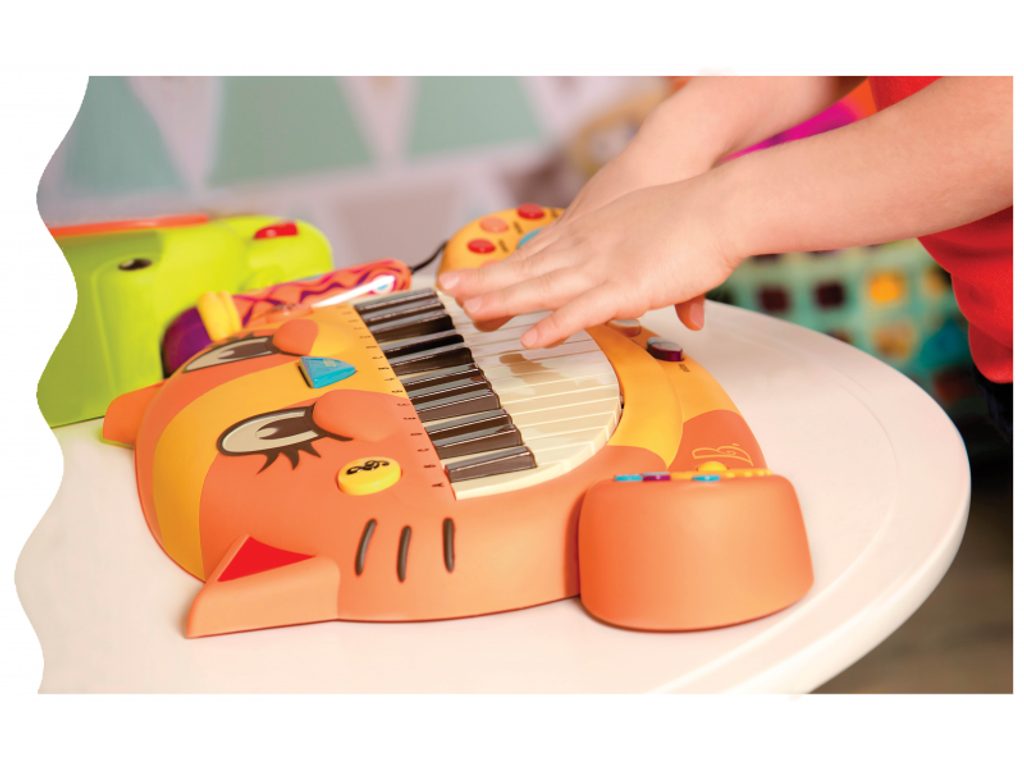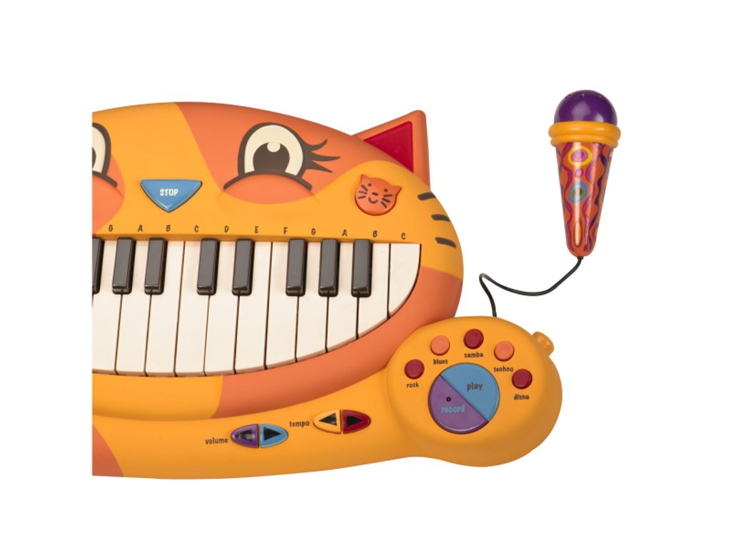 Elektronické piáno Btoys s funkčním mikrofonem pro malé hudebníky. Možnost volby z 5 instrumentů, 5 rytmů, 20 známých melodií a 7 kočičích písniček. Nastavení hlasitosti a tempa. Funkce nahrání vlastní melodie umožňuje zaznamenat první skladatelské pokusy. Mikrofon je možné odpojit. Baterie 4x AA jsou součástí. Vhodné pro děti od 2 do 6 let.