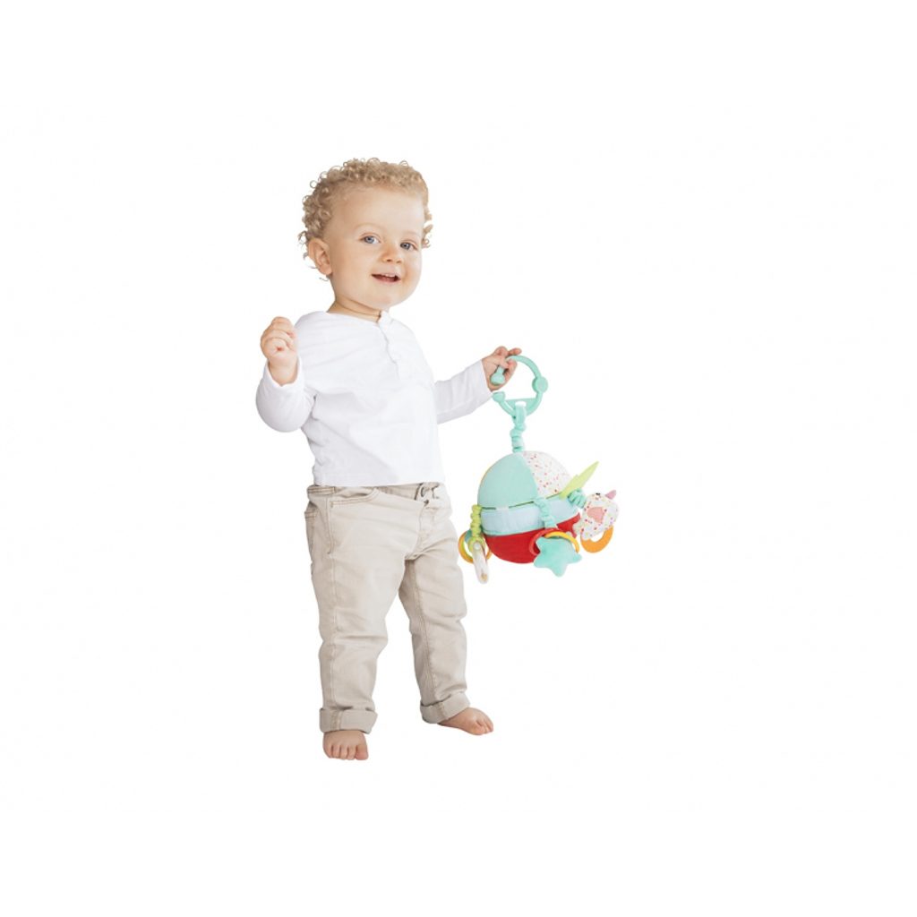 Hračka má univerzální háček, díky kterému ji můžete snadno kamkoliv zavěsit.