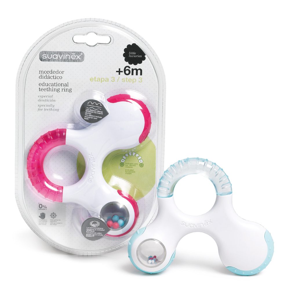 To je důvodem, proč Suavinex přichází krůček po krůčku s kousátky tří “kroků”, které na sebe navzájem navazují. Díky speciálnímu reliéfu bublinek a dokonale zvoleného materiálu napomáhají předcházet nepohodlným chvílím, kdy se zoubky prořezávají na svět.