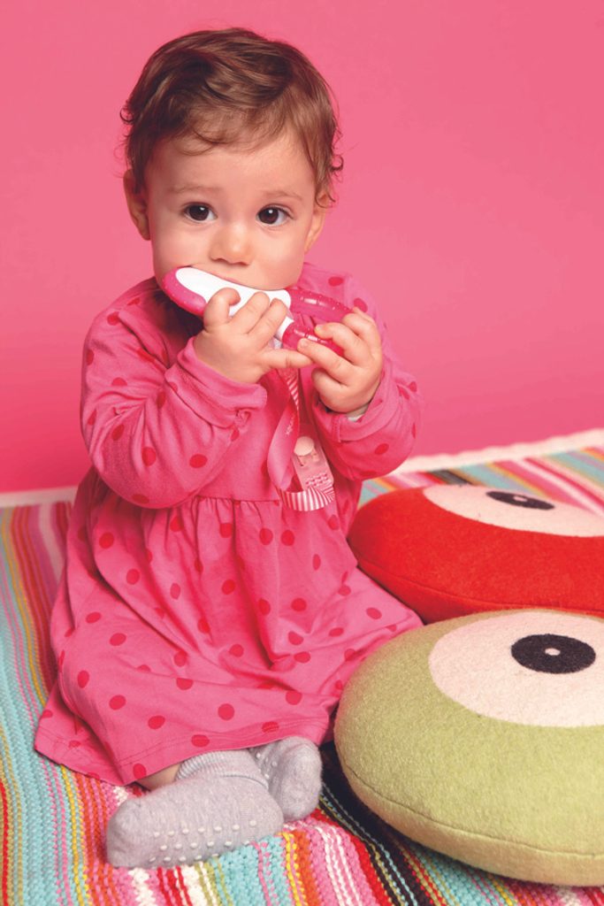 KROK 2 / STEP 2: kousátko s chladivou vodou jehož povrch ulevuje zaníceným dásnům a jeho různorodá struktura posiluje již nově prořezané zoubky