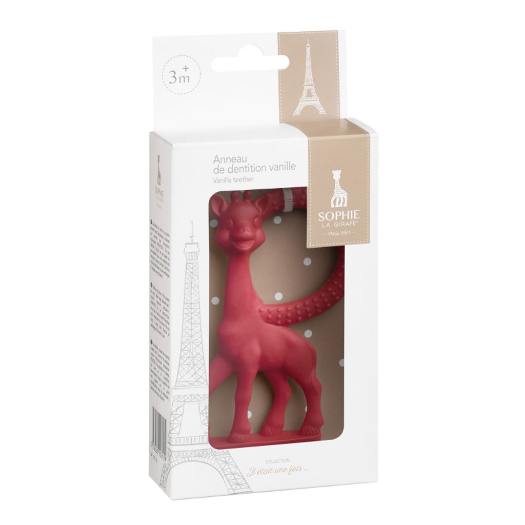 Vyrobeno z měkkého a poddajného materiálu s příjemnou vanilkovou vůni. Mnoho žvýkacích částí a multi-texturním povrchem pro jemnou masáž dásní. Díky jeho kroužku jej lze lehce a snadno uchopit.