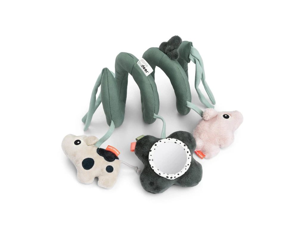 Spirála Tiny farm s aktivitami nabízí množství smyslových funkcí, které zaujmou a stimulují vaši malou ratolest. Díky měkkým šňůrkám ji snadno připevníte k postýlce, autosedačce nebo kočárku, takže ji můžete mít vždy po ruce.