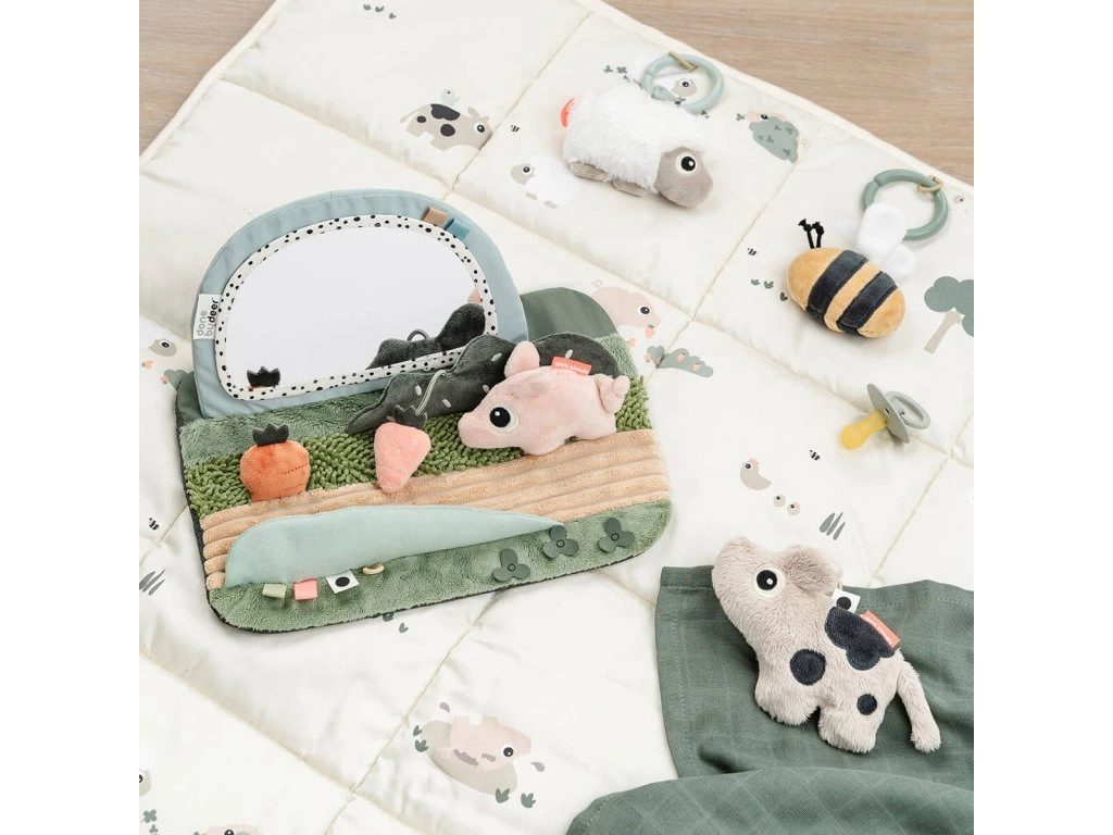 Podlahové zrcadlo Tiny Farm je skvělým nástrojem pro podporu trénování pozice na bříšku u malých dětí, které si rády prohlížejí svůj vlastní odraz. Díky spoustě senzorických funkcí je ideální pro povzbuzení delšího a aktivnějšího pobytu na bříšku. Zrcadlo je navrženo s různými smyslovými aktivitami, jako jsou barevné štítky, hmatové textury a zvuky, které nabízí nekonečné možnosti pro objevování a stimulační zábavu.