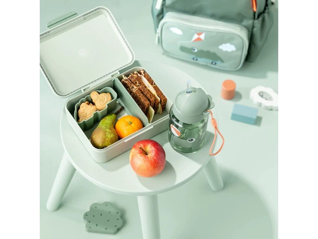 Krásná krabička na svačinu se snadno otevírá a zavírá. Zvuk kliknutí usnadňuje zjištění, kdy je zavřená. Uvnitř je praktická přepážka, kterou lze oddělit jídlo. Krabička je v různých pastelových barevách se zábavným motivem Croco.