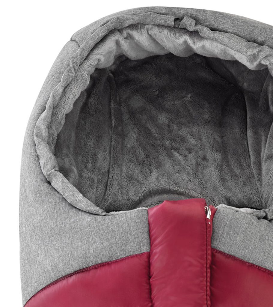 - Konec zipu je u krčku schovaný pod látkou, aby netlačil miminko