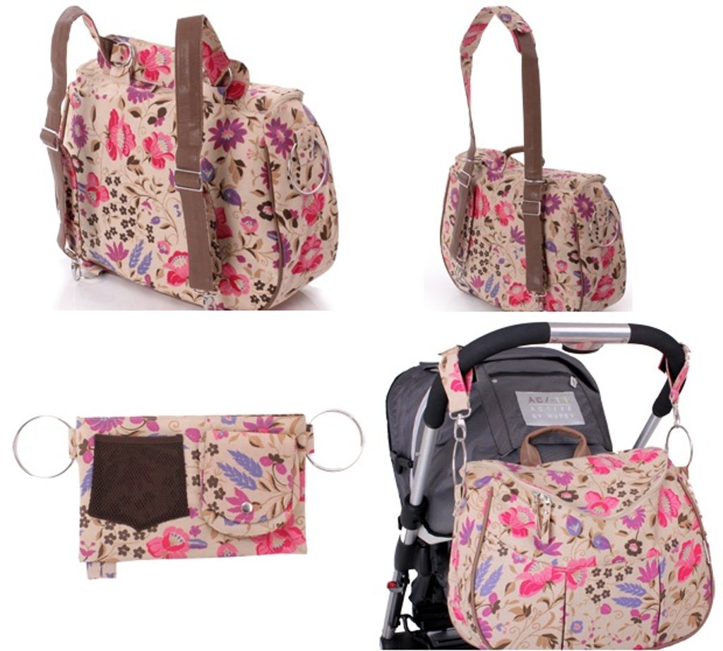 můžete jí nosit jako batoh, přes rameno či na kočárku za použití poutek,