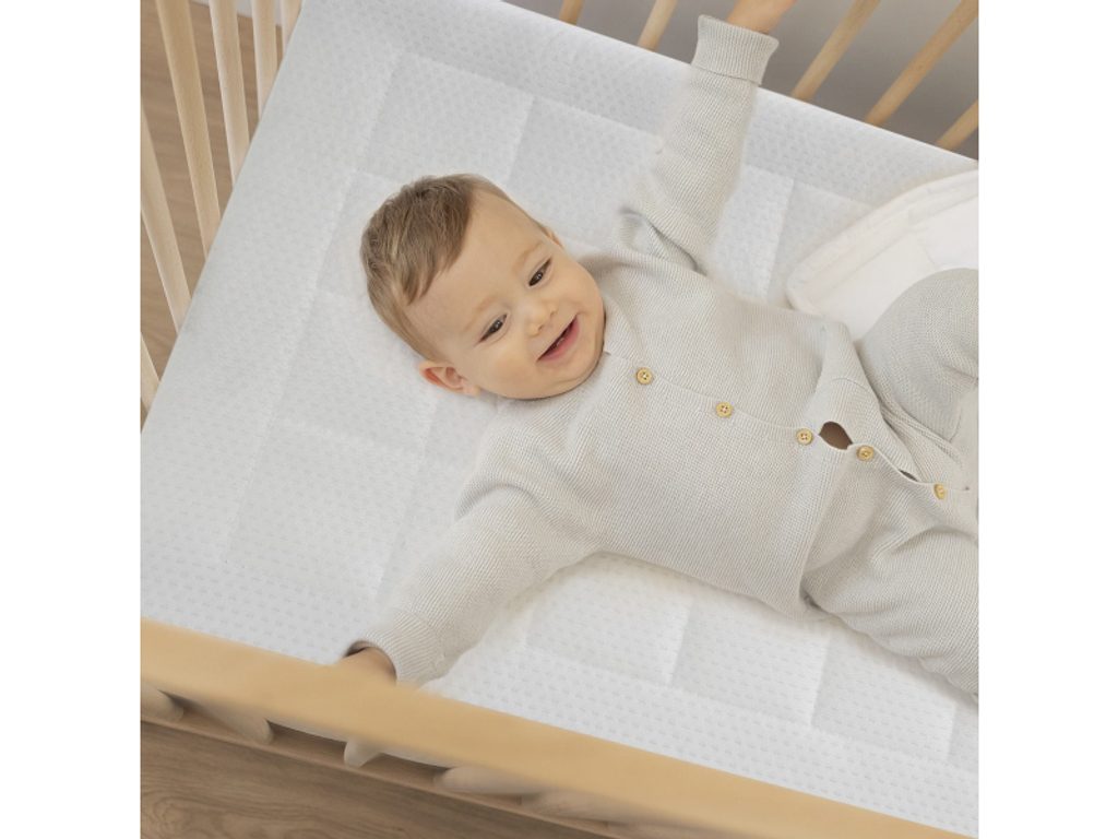 Matrace zároveň minimalizuje riziko přehřátí i udušení, protože obsahuje vzduchové kanálky uvnitř matrace, které zajišťují volné proudění vzduchu a efektivně odvádí CO2. Obvodové pěnové části tvoří bezpečné lůžko, které napomáhá miminku zůstat vždy uprostřed matrace.