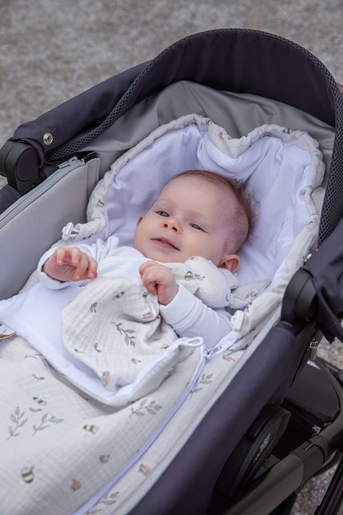 Malý letní fusak pro novorozené miminko s využitím do cca 8 měsíců. Rozměr fusaku je ideální pro použití do korbiček hlubokého kočárku a je vhodný také do autosedaček.