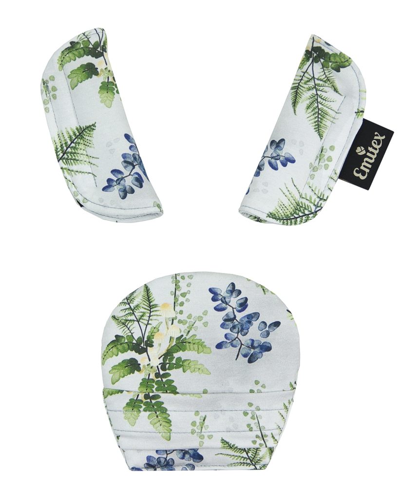 Souprava polstrování se skládá ze 3 dílů - většího polstrování pod sponu a polstrování na dva pásy. Je vyrobeno z příjemného, měkkého materiálu. Použitím polstrování se stanou pásy pro dítě příjemně měkké a přestane jej tlačit tvrdá spona.