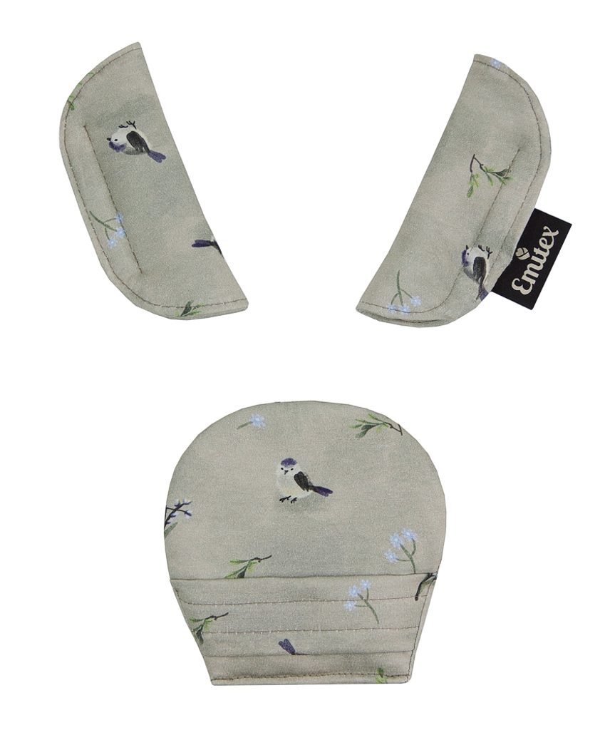 Souprava polstrování se skládá ze 3 dílů - většího polstrování pod sponu a polstrování na dva pásy. Je vyrobeno z příjemného, měkkého materiálu. Použitím polstrování se stanou pásy pro dítě příjemně měkké a přestane jej tlačit tvrdá spona.