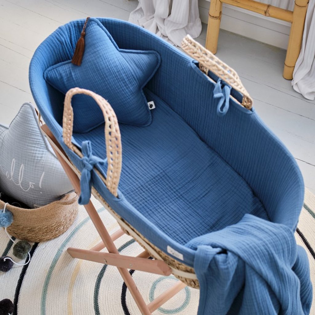 Kompletní set set obsahuje: Mojžíšův koš, stojan, potah koše, prostěradlo, matraci a deku textil z jemného a prodyšného materiálu materiál textilu: 50% bavlna, 50%… Zobrazit více