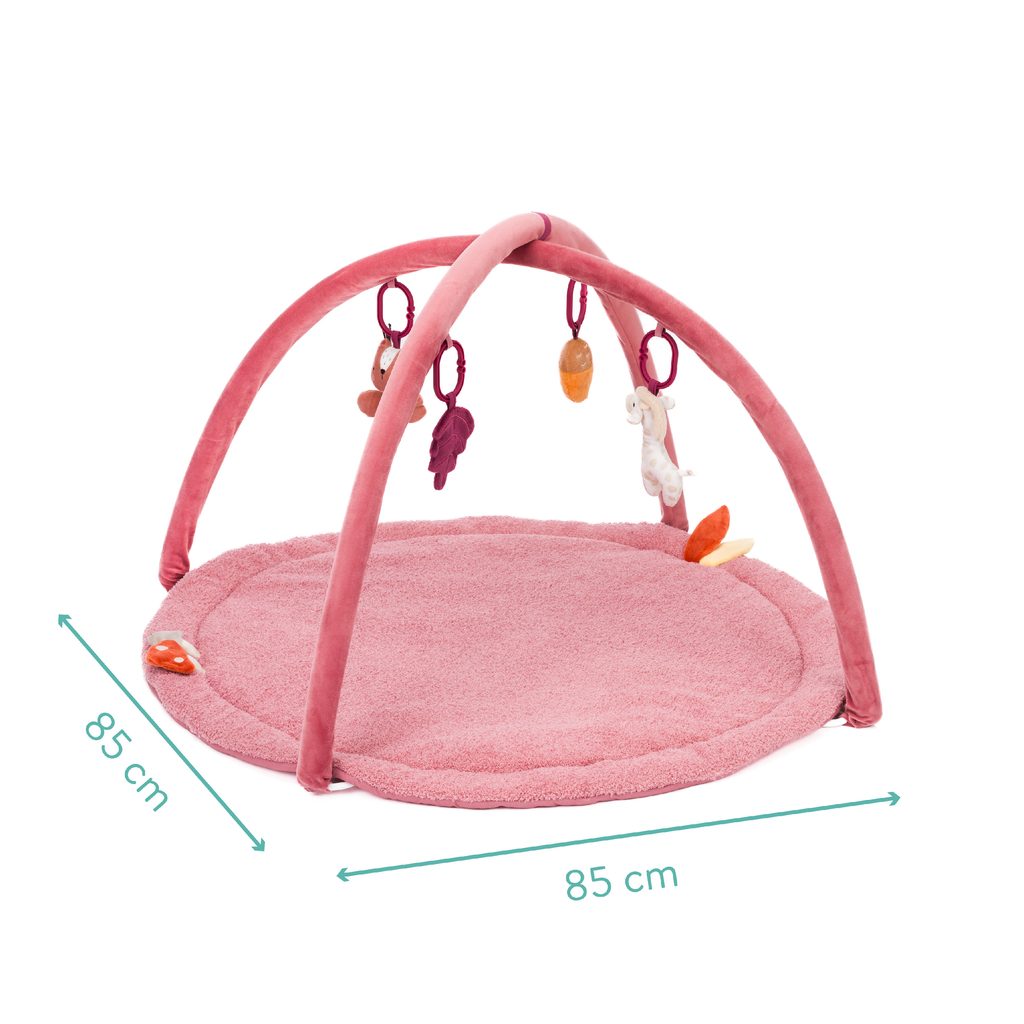 Hrací deka Animal Friends Rose s barevnými hračkami připevněnými k hrazdě nabízí různé možnosti zábavy, které podporují rozvoj koordinace a jemné motoriky vašeho dítěte. Objevování různých interaktivních prvků probouzí zvědavost a stimuluje rozvoj miminka. Díky měkce polstrované podložce je skvělé ležet a lézt, zatímco jasné barvy hraček upoutají pozornost a potěší malé dětské oči.
