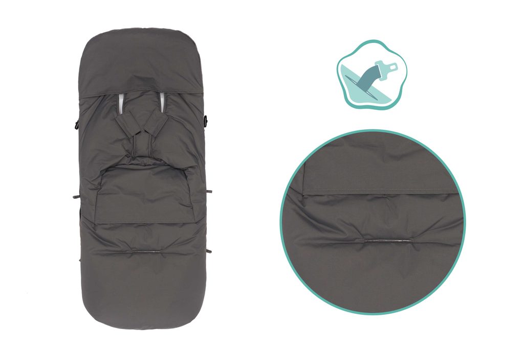 Jeho speciální tvar do písmene L zabraňuje sklouznutí z kočárku a drží tak mnohem lépe než běžné fusaky.