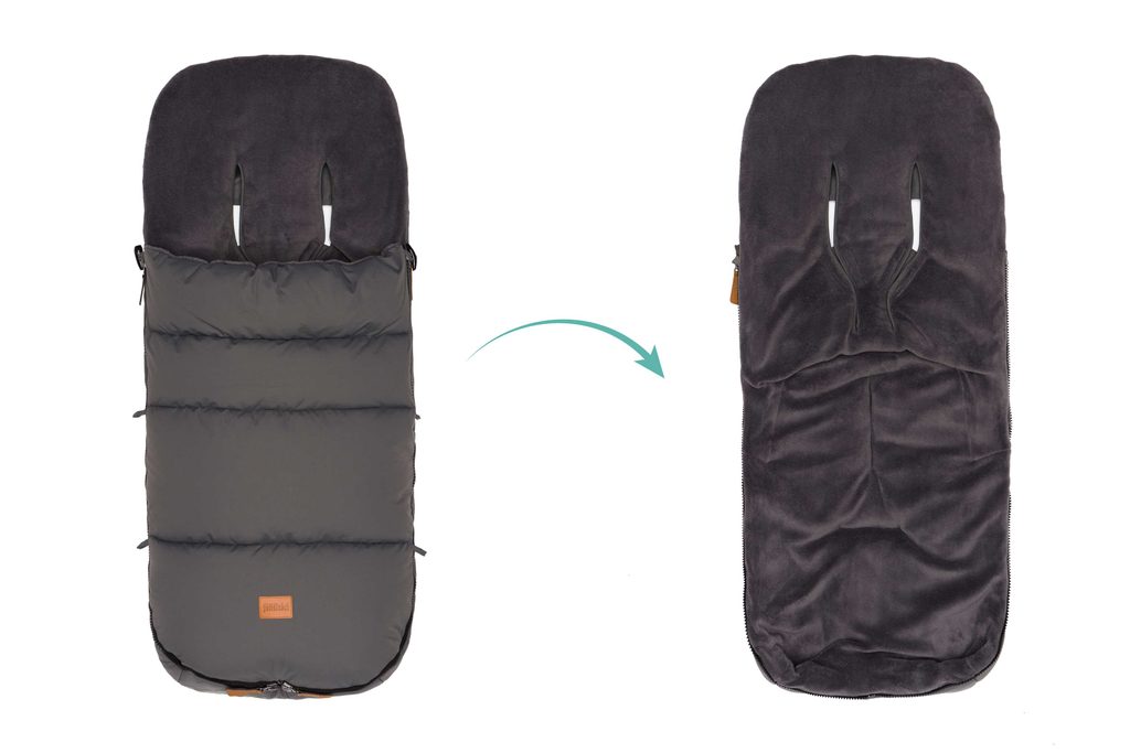 Díky celoobvodovému zipu je možné fusak částečně nebo zcela rozepnout. To umožňuje snadnější vkládání i vyjmutí dítěte z fusaku. Dva knoflíky po stranách umožňují sklopení přední části a vaše dítě je tak chráněno proti průvanu.