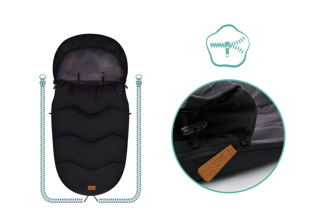 Díky prostorným rozměrům 105 x 53 cm poskytuje fusak dostatek volnosti pohybu, ať už během odpočinku nebo na cestách. Je ideální jak pro sportovní kočárky, tak pro sportovní vozíky. Vnitřní vrstva z extra měkkého mikroveluru poskytuje příjemné teplo a jemně se přizpůsobí pokožce dítěte, zatímco stylový design ladí s vaším každodenním oblečením.